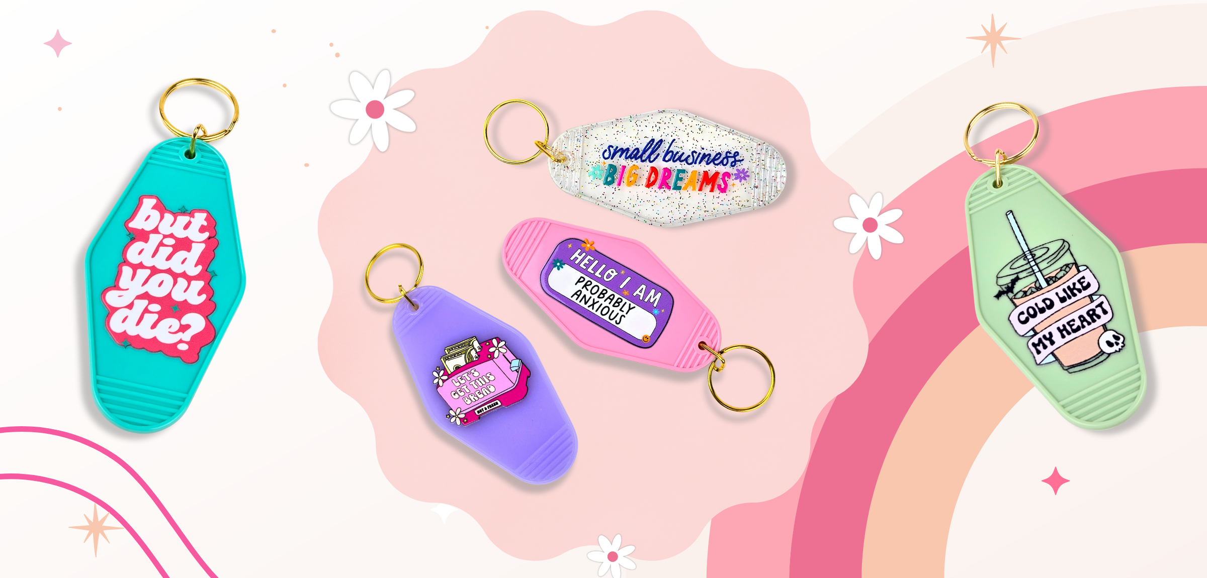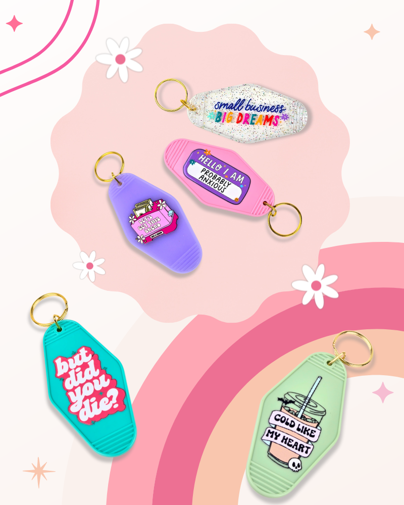 Discover the perfect blend of style and function with our unique keychains! At Crimrose Design Co., our keychains are not just practical; they are mini works of art! Available in a wide range of colors, shapes, sizes, and materials, each keychain is designed to reflect your individuality and add a touch of personality to your everyday essentials. Whether you’re looking for a fun accessory or a thoughtful gift, our keychains are crafted with care and creativity to suit any taste!