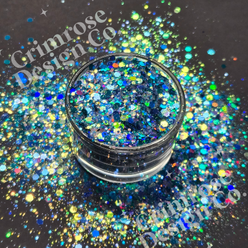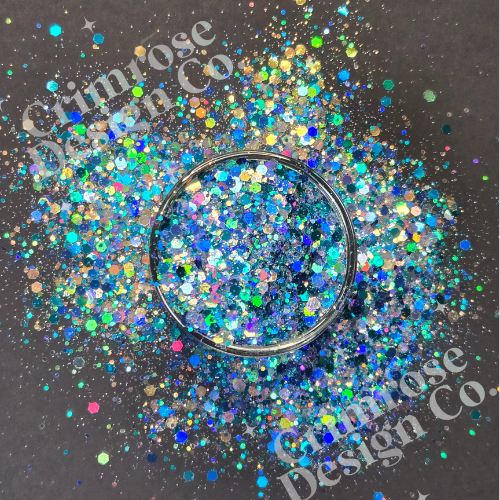 Add a burst of icy magic to every creation with Frostburst chunky glitter mix, a dazzling mix of shimmering silvers and deep, sparkling blues. This glitter captures the energy of frost sparkling in the winter sun — crisp, vibrant, and full of enchantment.